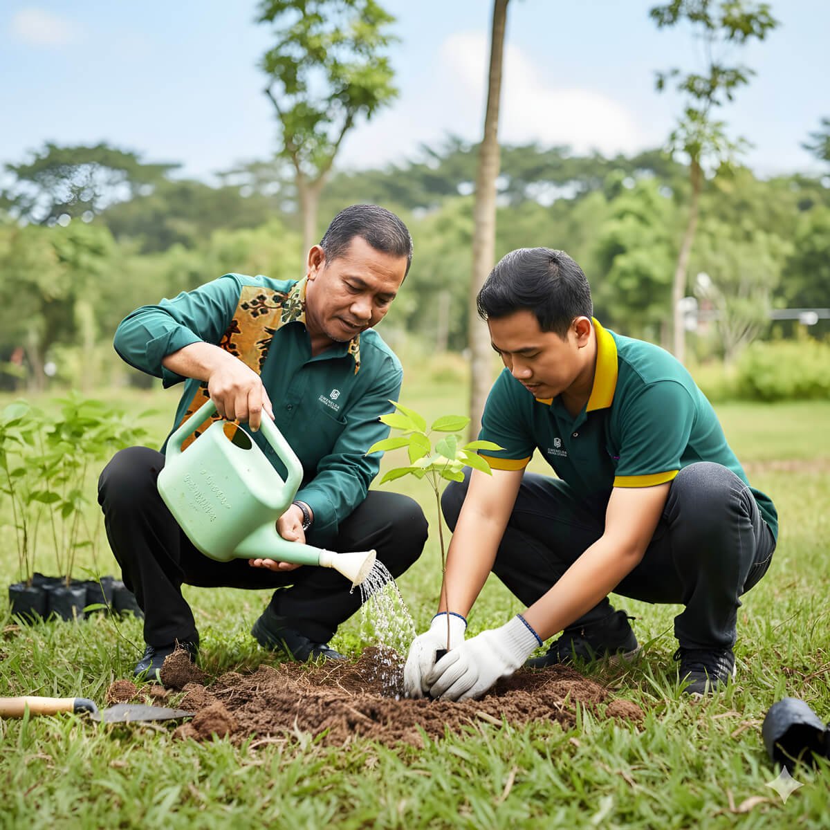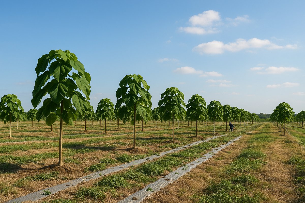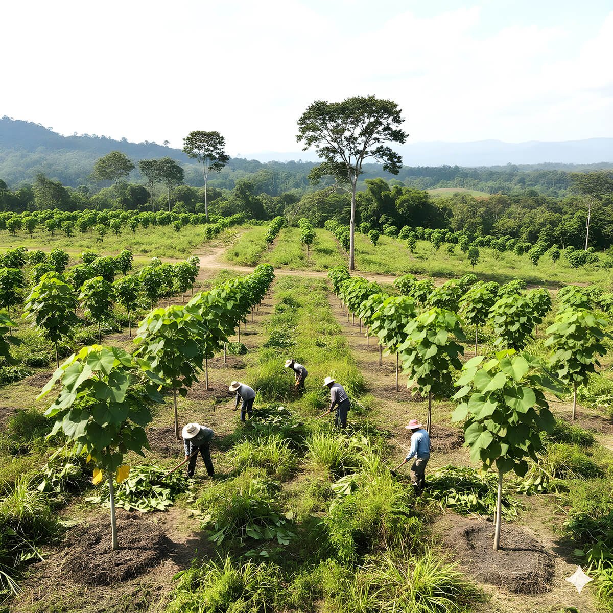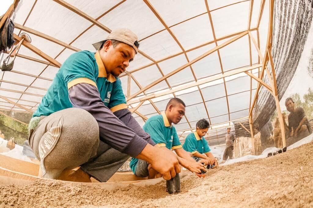 Seedlings are planted with a spacing of 3 by 3 meters, providing each tree with optimal room to grow.